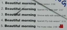 Heute war auf dem Sender NDR2 eine neue Version von "Beautiful Morning" zu hören - mit mehr Schlagzeugelementen und Gitarren - die Unterschiede könnten allerdings auch durch die unterschiedlichen Qualitäten und der Sendeeigenschaften der Radio-Stationen resultieren! Doch überzeugt Euch selbst davon - hier das Realplayer-File: Beautiful Morning